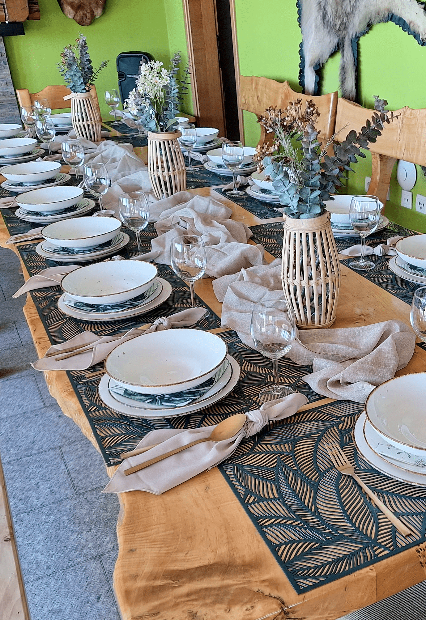 Dinner is served in a private villa, around one table, in a warm and relaxed atmosphere.