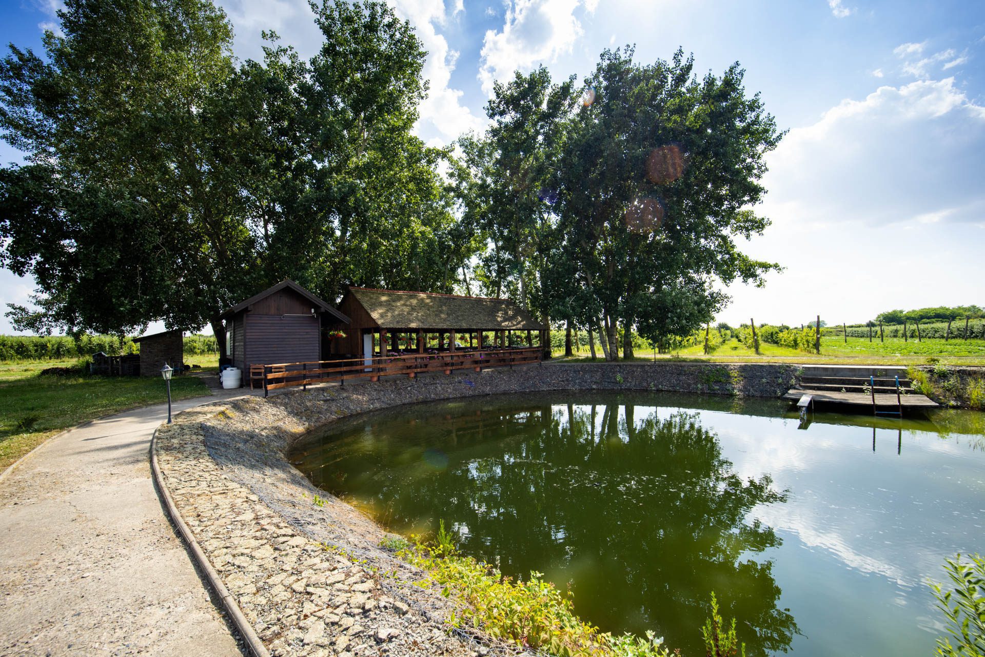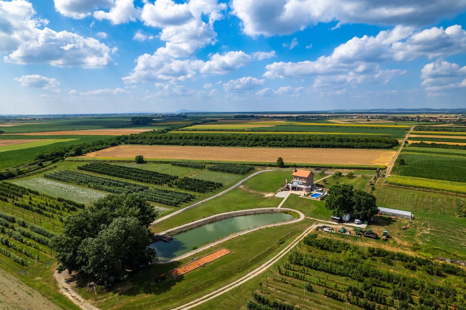 Osim vile, u neposrednoj blizini se nalazi slikovito jezero površine 2000 m^2 i prostrana sjenica od 100 m^2, savršeno uklopljena u prirodni hlad crnih topola. Ova posebnost, zajedno s jedinstvenom privatnošću koju nudimo, gdje su naši najbliži susjedi gotovo kilometar daleko, osigurava da ništa i nitko neće ometati vaš mir i uživanje.