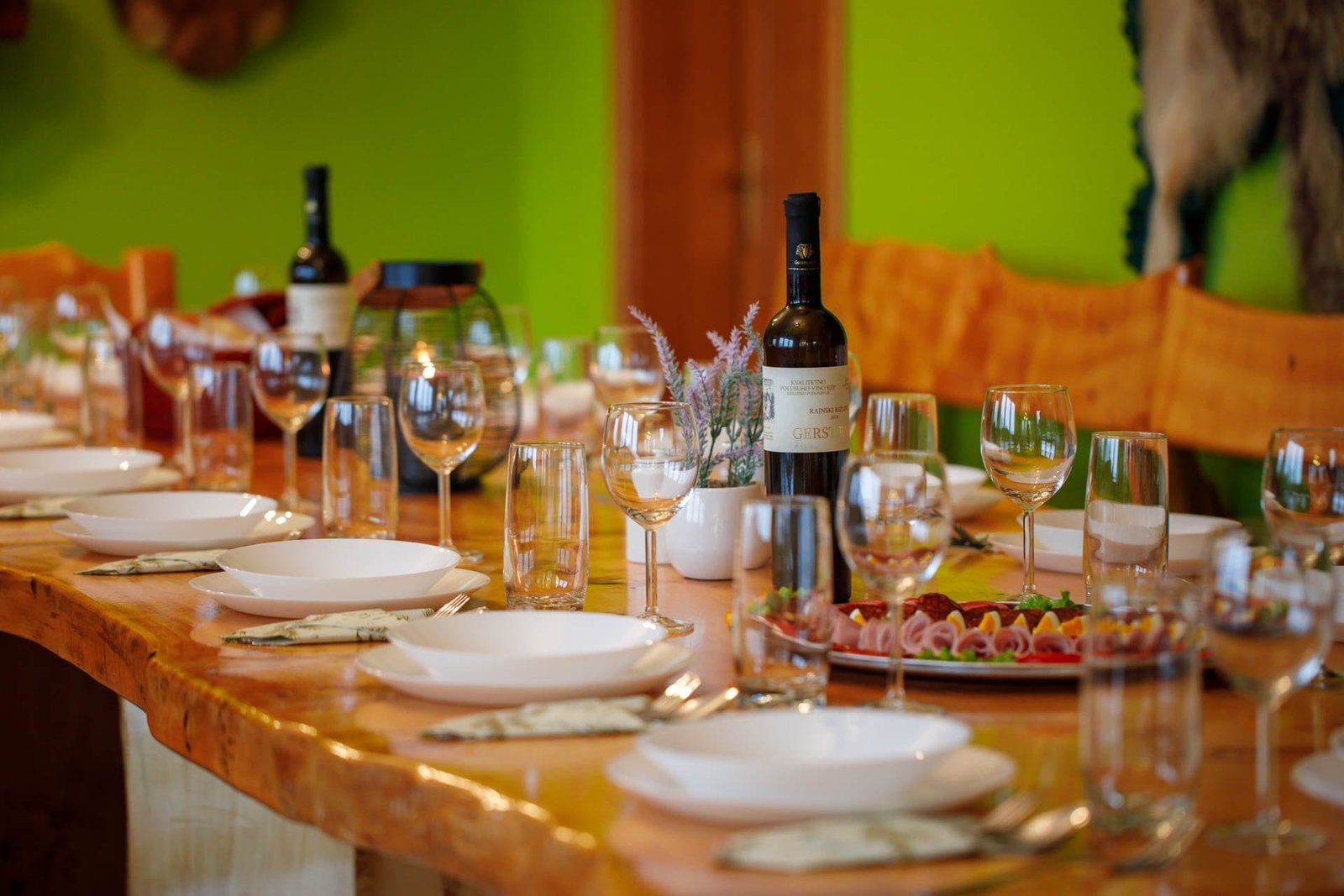 Naše imanje nudi fleksibilnost za sve vrste događaja i preferencija. U hladnijim mjesecima, naša Vila može primiti do 24 osobe, pružajući toplo i ugodno okruženje za vaše obroke. Kada je vrijeme toplo, naša prostrana sjenica može ugostiti do 60 osoba, omogućujući vam da uživate u obrocima na otvorenom uz prekrasan pogled na okolni krajolik.