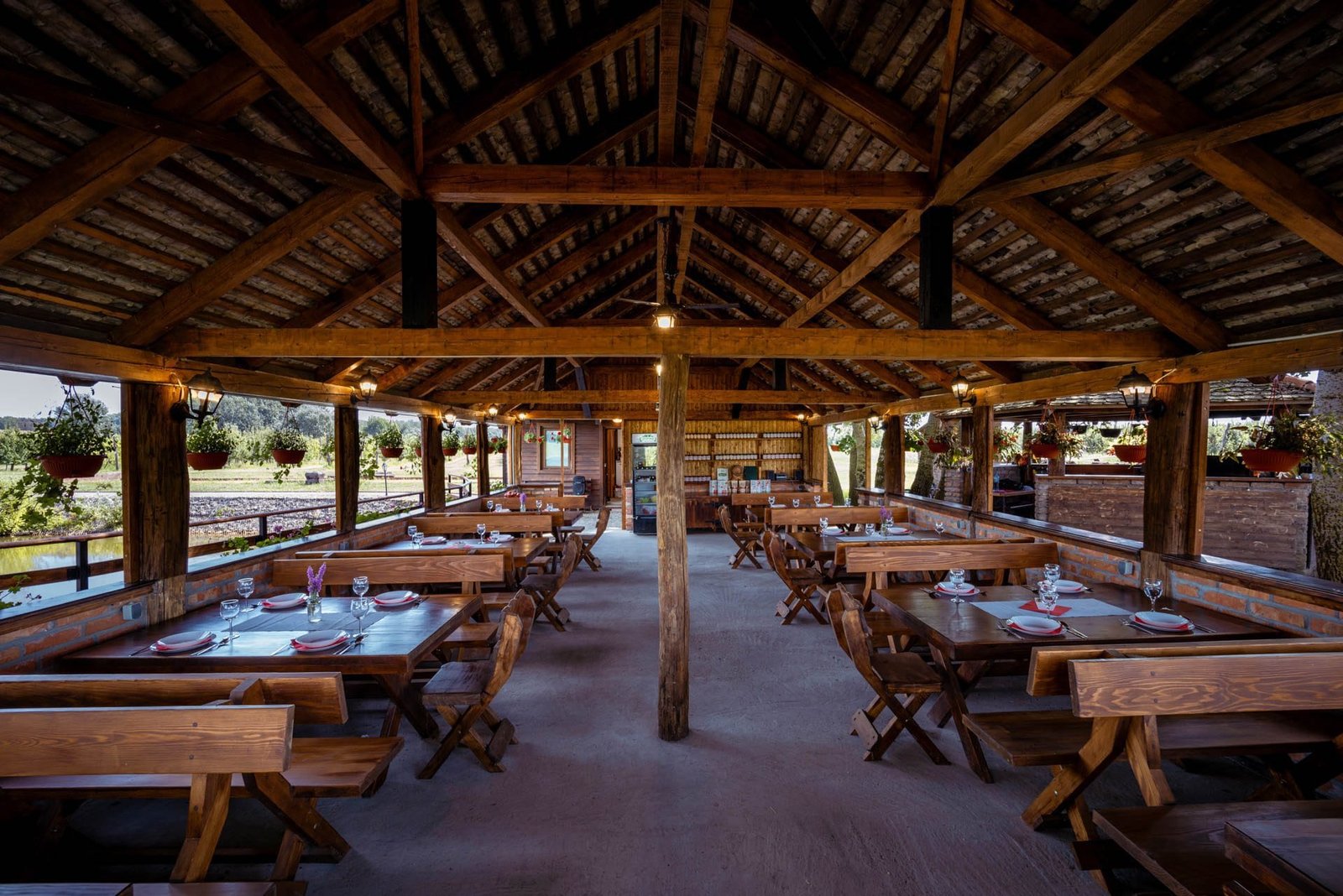 Pod našom prostranom sjenicom, koja je naslonjena na prekrasno jezero, nalazi se prostor koji može udobno smjestiti do 60 ljudi za 8 velikih stolova, svaki opremljen klupama za autentično iskustvo u prirodi. Naša multifunkcionalna sjenica je dizajnirana s mogućnošću zatvaranja pomoću prozirne folije, što omogućuje gostima da uživaju u događanjima bez obzira na vremenske uvjete. Ovo osigurava da vaše proslave i okupljanja ostanu nezaboravni događaji u svako doba godine.